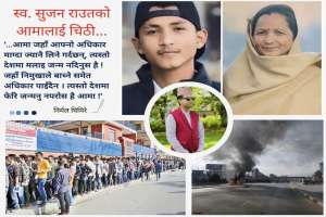 आमा सञ्चै छु कसरी भनुँ, सपना खोज्दा खोज्दै अस्ताएछु । तिमीलाई धेरै खुसी दिन्छु, बुवाको...